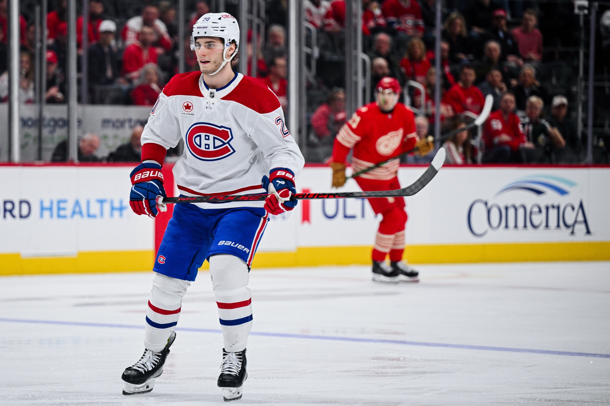 Sur la glace, ça saute aux yeux : il gagne ses batailles, protège la rondelle comme un vétéran et dicte le jeu en zone offensive.